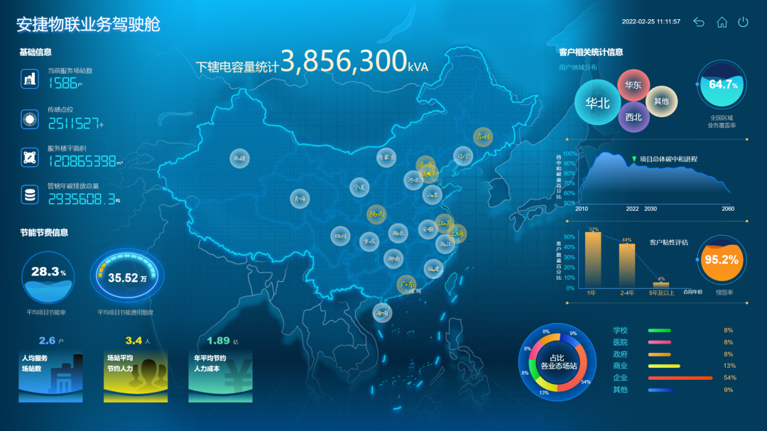 依托本成果,ballbet贝博·(中国)物联成为国内首家通过BSI(英国标准协会)认证(基于PAS 2060:2014标准实现碳中和)的综合能源解决方案提供商,截至2021年10月,本成果已服务包括国家会展中心(天津)、西安曲江开发区、北京亦庄科技新城、北京大学等全国一千余家用户,覆盖大型公共建筑、商业地产、酒店、轨道交通等领域。应用楼宇面积超1亿平米,可学习、可分析、可预测、可决策,能够帮助用户将楼宇保持在最健康的状态,同时使楼宇内的用户体验达到最佳,可节约运行成本50%以上,节省系统维护费用20%以上,降低能耗15%以上,降低碳排放超百万吨。