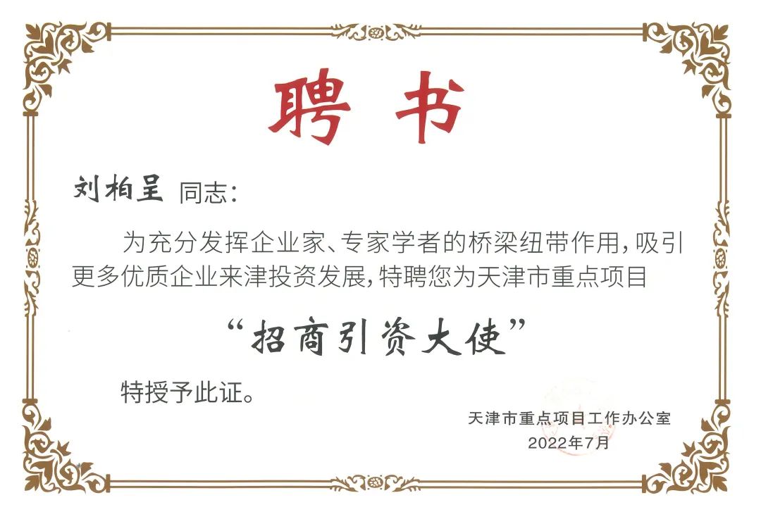 新闻|ballbet贝博·(中国)物联董事长刘柏呈受邀担任天津市重点项目工作办公室“招商引资大使”