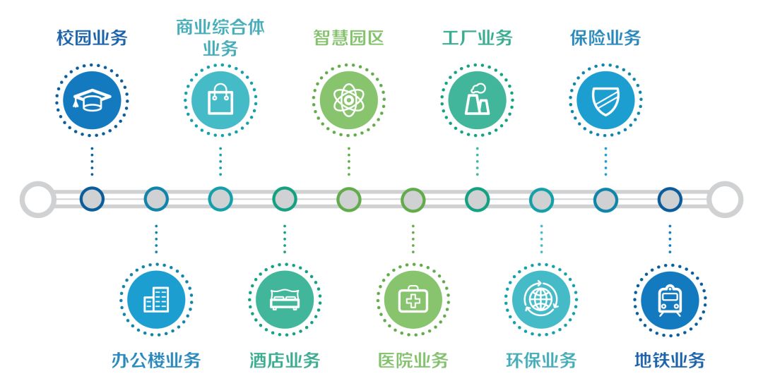 可提供包括:变电站智能运维、电力需求侧能源管理、中央空调监控运维节能、暖点供热与运维、燃气热泵、消防安全监控、给排水运行监控、地下车库智能照明、室内智能照明、路灯智能监控、电梯运行、智能安防等数十项专业解决方案。